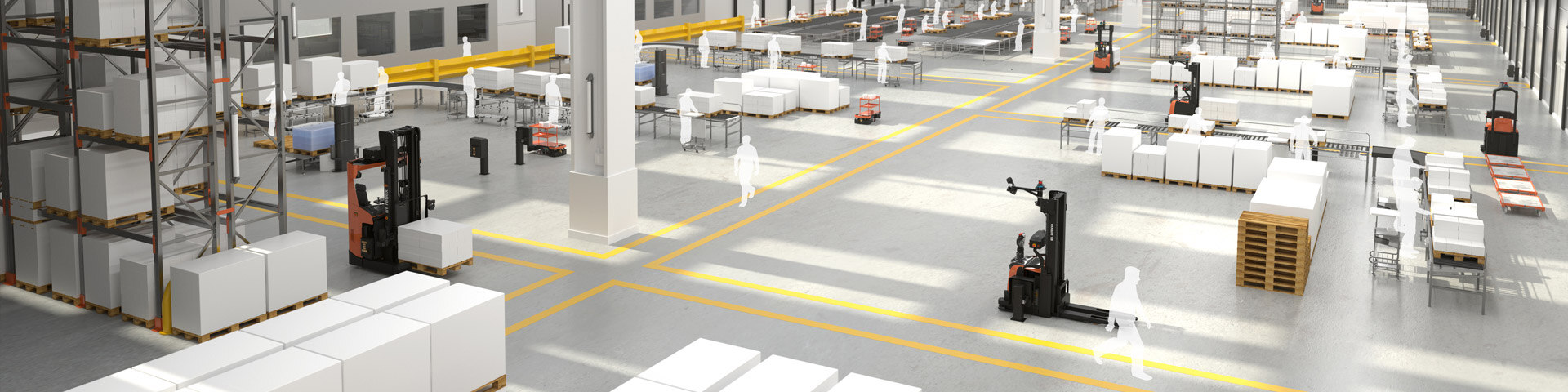 Werfen wir nun einen Blick auf folgende Produktionsstätte, um zu sehen, welche Prozesse von fahrerlosen Transportsystemen problemlos ausgeführt werden können.