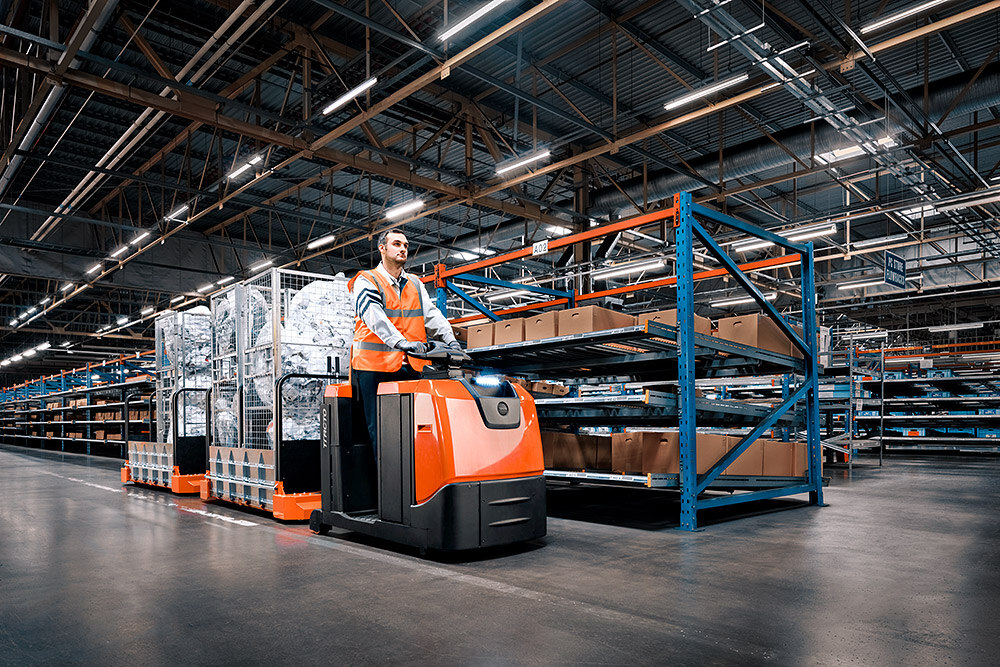 Hier sind Mitgängerschlepper wie die Toyota Tracto W-Serie eine gute Lösung, um die Ergonomie zu verbessern, und es ist sicherer als der Transport der Gitterboxen von Hand. Insgesamt sind Mitgänger- oder Mitfahrerschlepper eine gute Alternative zu herkömmlichen Gabelstaplern, wenn es um die Handhabung von Einzelteilen geht. Sie sind sicher, leicht zu manövrieren und perfekt für den Transport von Paletten und die Kommissionierung von Einzelteilen.